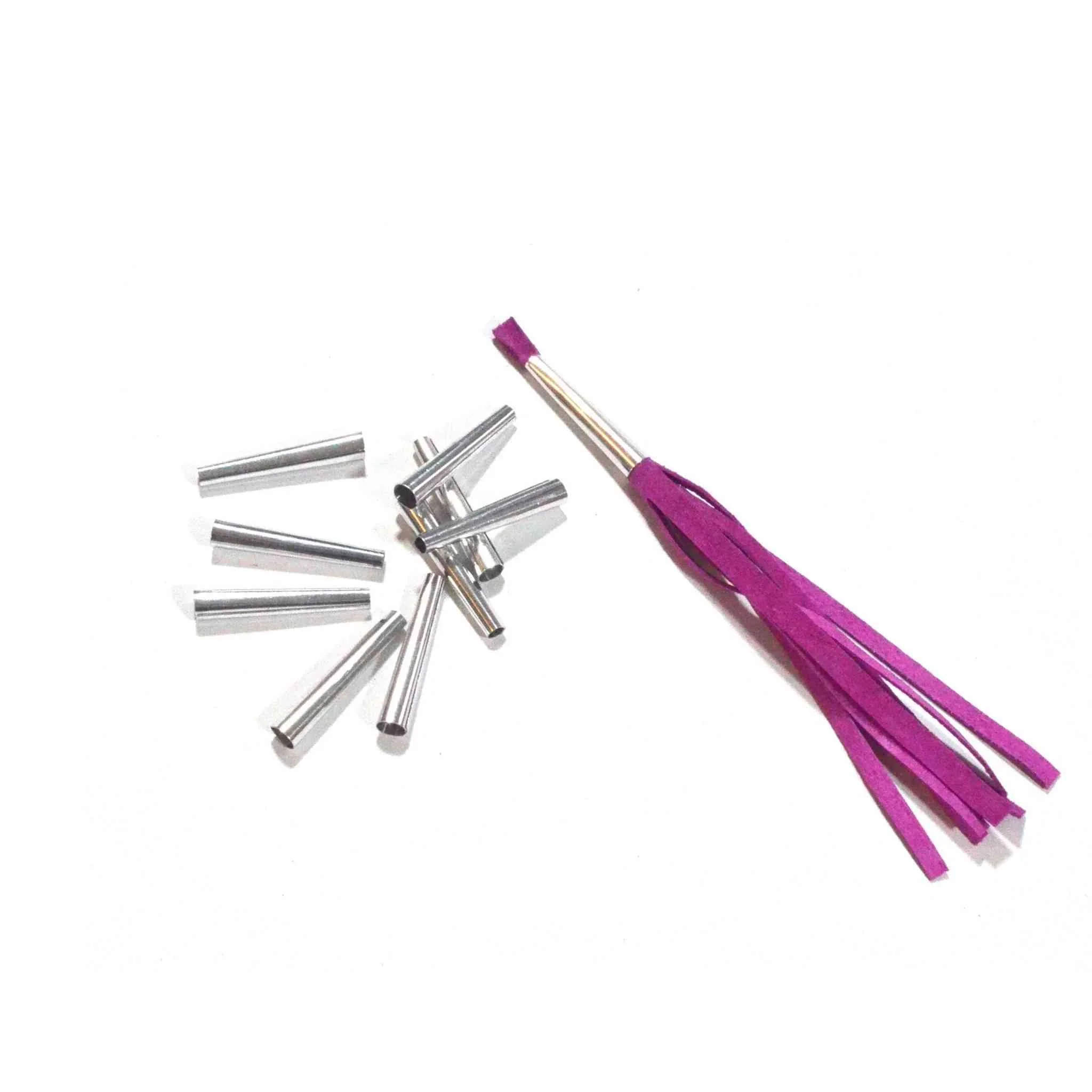 Lightweight aluminium cones used decoratively for native American regalia. The are also often used on fringing, and as lace endings. The metal is soft and can be crimped to hold in place.