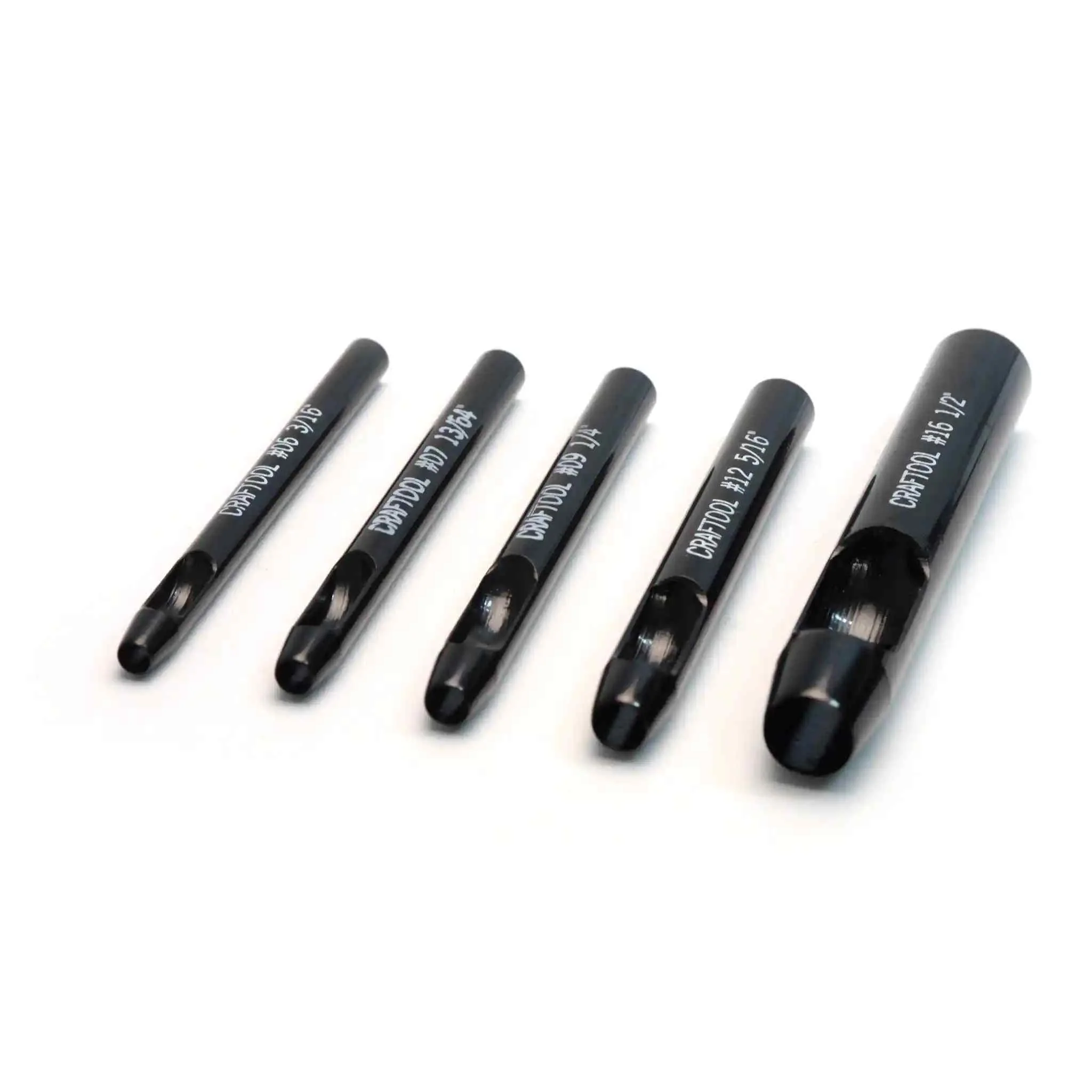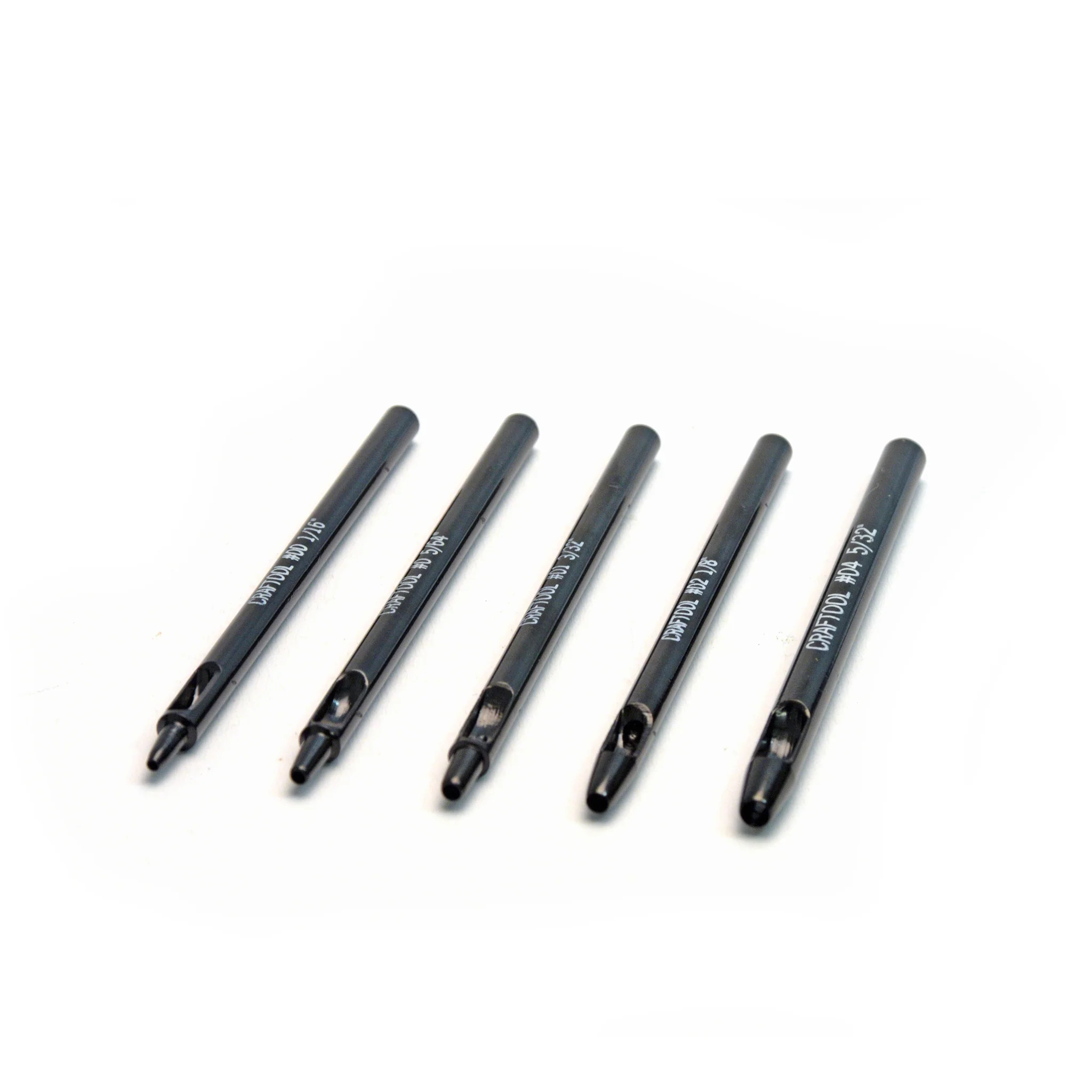 Note:- The size indicated is the diameter of the drive punch end, the punches are slightly coned and so when driven through thicker leathers they will leave a slightly larger hole on the surface of the leather.